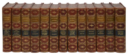 Edinburgh, n.d c.1890, W.P. Nimo, Hay, & Mitchell, octavo, red half calf with red marbled boards, gilt tooled spine with raised bands, 13 vols.