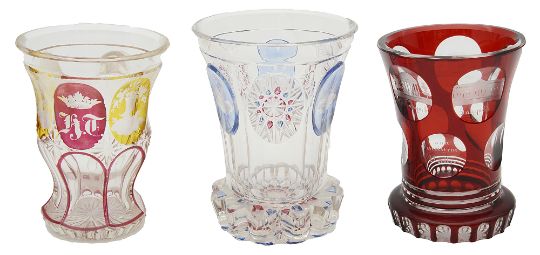 Three late 19th century Bohemian glass spa beakers