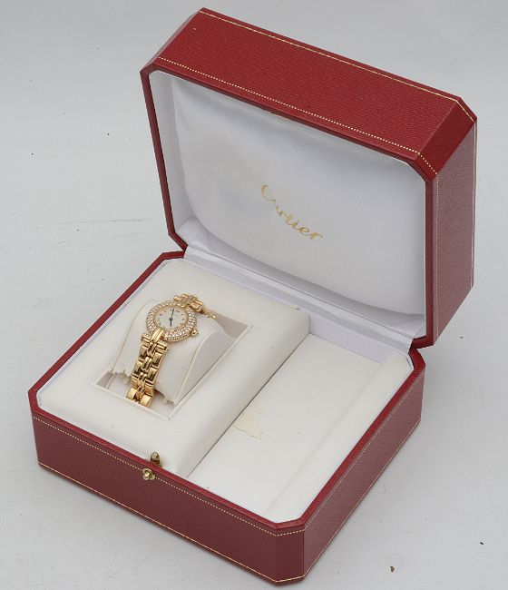 An 18K gold and diamond ladies Cartier Colisee bracelet watch