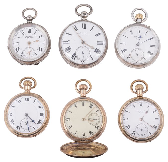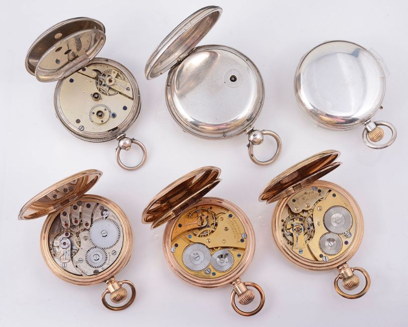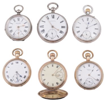 A collection of six pocket watches