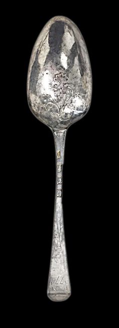 A George III silver Old English pattern lace back tablespoon