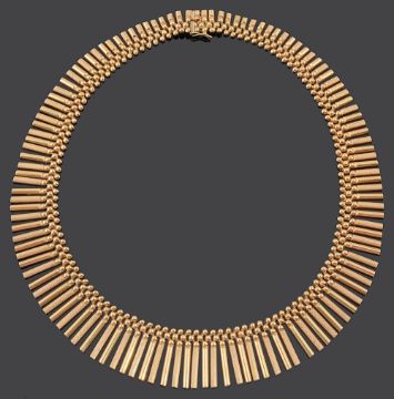 A Continental 18ct gold Egyptian style fringe necklace
