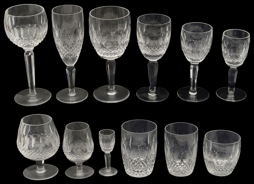 An extensive suite of Waterford Crystal Colleen pattern drinking glasses