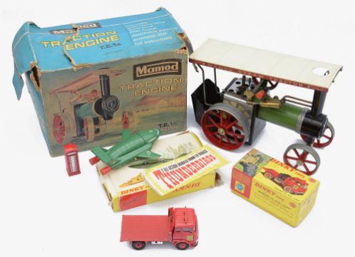 the Dinky Toys to include a boxed no. 101 Thunderbirds 2 and 4, a boxed no. 425 Bedford TK Coal Lorry, incomplete with three coal sacks and scales missing, and an unboxed red telephone box, and a boxed Mamod T.E.1A live steam traction engine, (4)