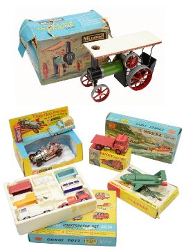A small group of Dinky Toys and a Mamod Traction Engine,