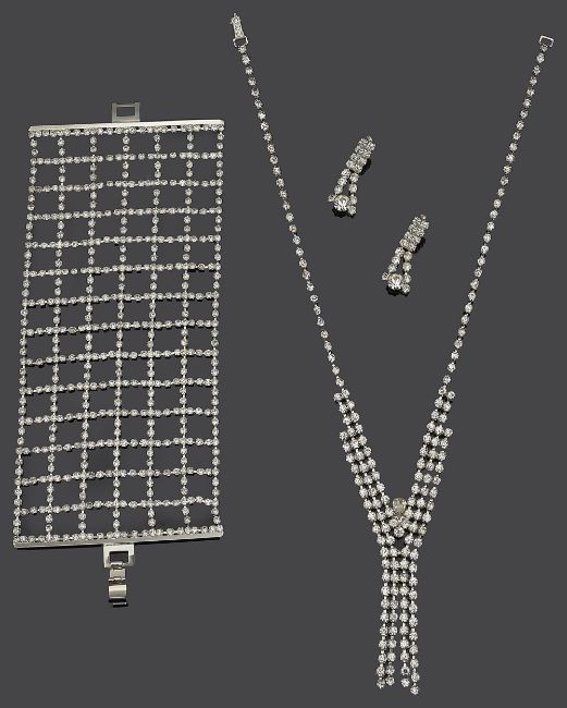 together with a costume jewellery rhinestone necklace and drop earrings (3)