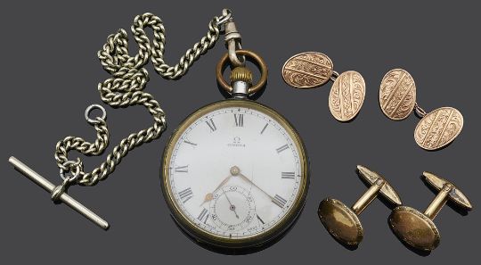 Condition: The movement of the watch not tested but running at the time of cataloguing. First pair of cufflinks in good condition. second pair a little tarnished but in good overall condition.