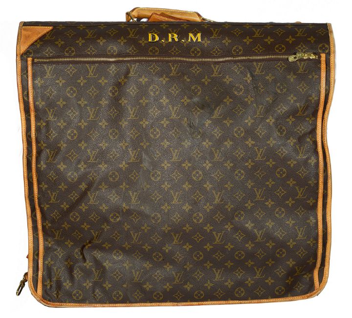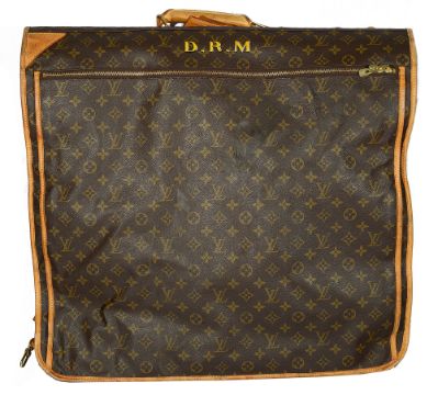 circa 1996, trimmed with Vachetta leather, two gold-tone hardware, leather carrying handle and luggage tag, together with two additional Louis Vuitton garment covers, with owners transfer monogram D.R.M