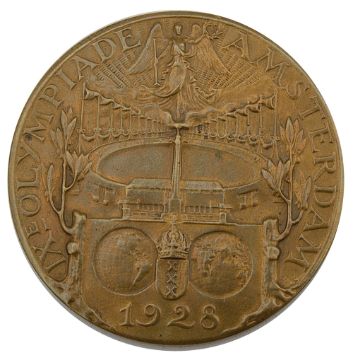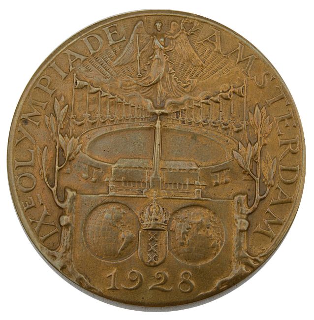 A bronze 1928 Amsterdam Olympics Games participation medal,