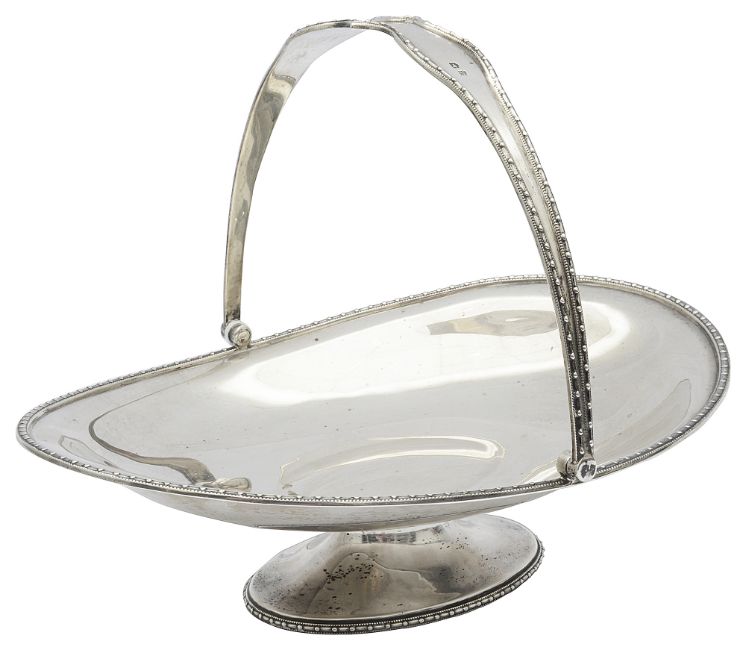 A George V silver swing handled basket