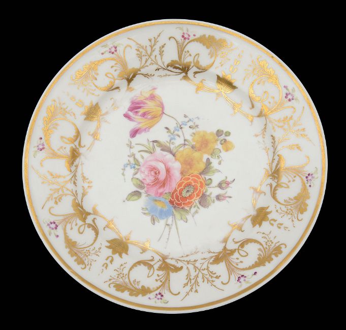 A porcelain plate c.1810 decorated in the manner of William Billingsley