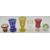 Condition: First in fair condition with a small chip to the rim, markings and small scratches to the surface and the decoration partially rubbed, second fair condition with chip to the rim, markings to the surface and rubbed decoration, scratches to base, third in poor to fair condition, large crack to the goblet body and chips to the rim, gilding around the rim heavily rubbed, fourth in fair to good condition with no apparent chips or cracks, some rubbing to the applied decoration and light scratches to the base, fifth in fair to good condition with no apparent chips or cracks, rubbing to decoration and some impurities to the glass, sixth in fair to good condition with a chip to rim and scratches to the base, no apparent cracks
