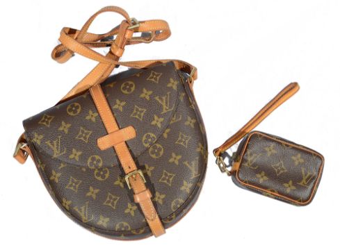 with vachetta leather strap and buckle closure with original dustbag together with Louis Vuitton monogram canvas camera bag with alcantara lining (2)