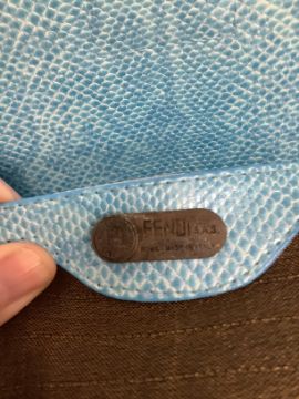 with adjustable shoulder strap and magnetic clasp fastening featuring the Fendi logo. Lined interior with zip close pocket.