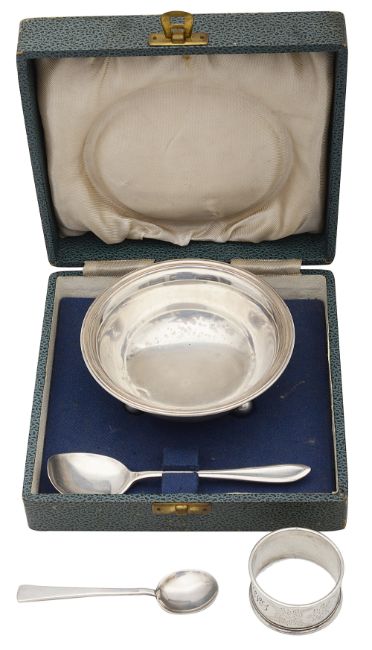 A George VI silver christening bowl and spoon
