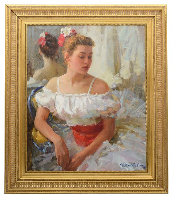 'Portrait of a dancer', oil on canvas, signed lower right and inscribed in charcoal on reverse, framed