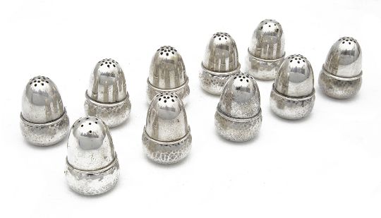 A matched set of ten Norwegian .830 silver novelty acorn form salt and pepper pots