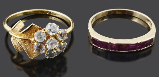 An unusual Continental aquamarine set cluster ring and another ring