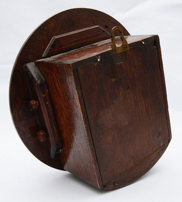 An early 20th century small oak cased circular drop dial wall clock