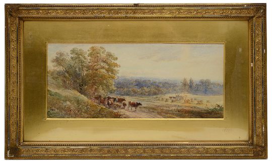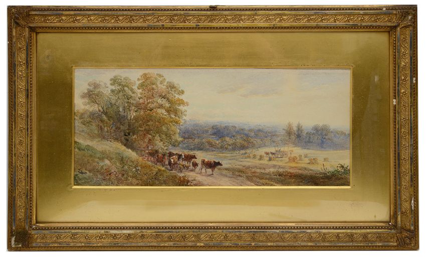 'Corn fields', watercolour on paper, framed and glazed, historic label to the reverse attributing the work to Earp, other labels for 'J & G Biddle, Brighton' and 'H. M. Harris, Plymouth'