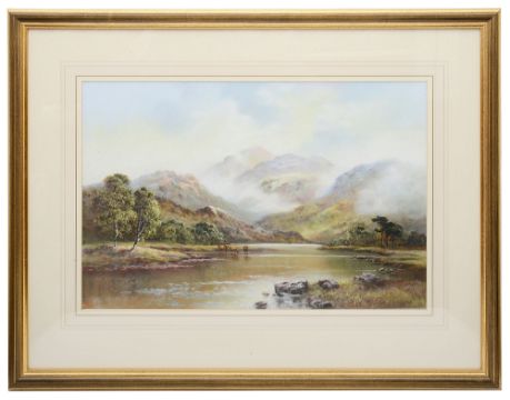 Wendy Reeves (British b.1945) 'Scottish highland loch with cattle'