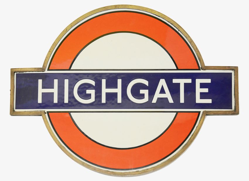 A pre-war London Underground Highgate enamel 'bullseye' roundel sign,