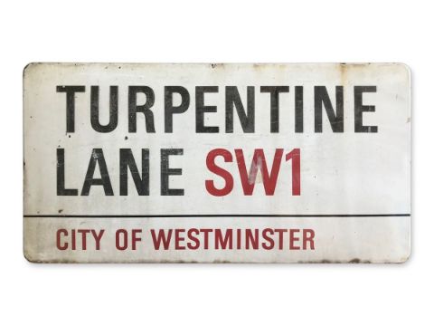 An enamelled iron street sign for Turpentine Lane SW1, City of Westminster