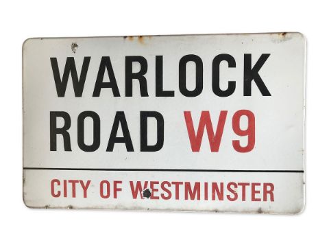 An enamelled iron street sign for Warlock Road W9, City of Westminster