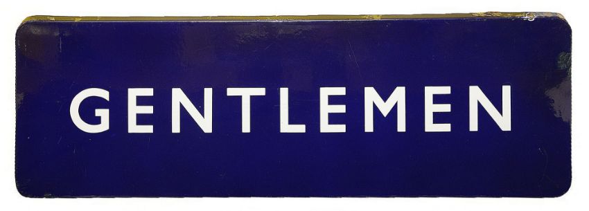 A BR(E) enamel sign displaying 'GENTLEMEN',