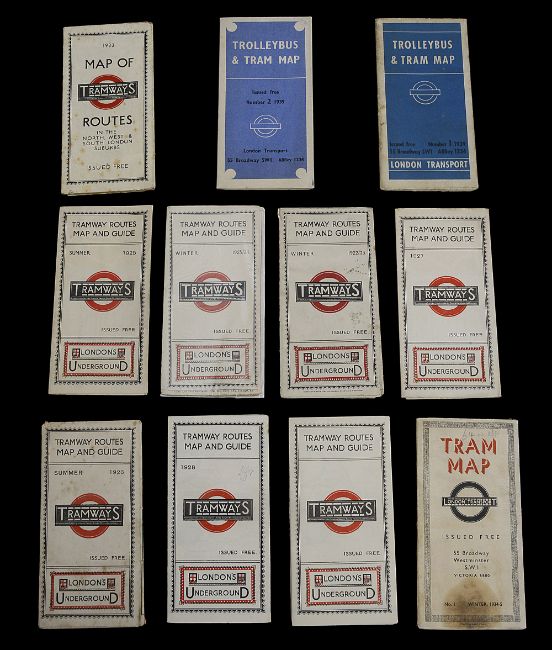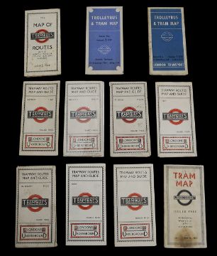 A collection of early 20th century London Underground Tramways folding pocket maps,