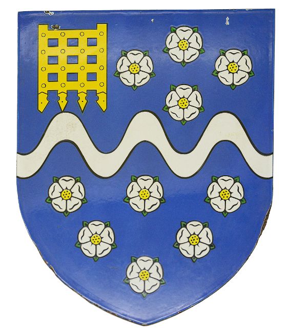 nameplate measures height 23cm, width 49.5cm, coat of arms height 46cm, width 37.5cm