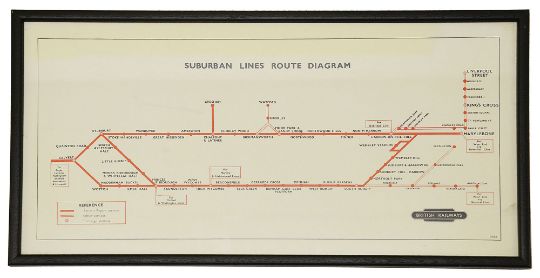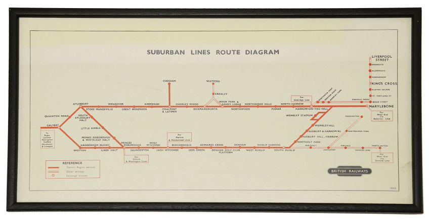 A framed BR 1944 Suburban Lines Route Diagram,