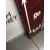 with white lettering on a maroon ground, with double-flight arrow pointing left,