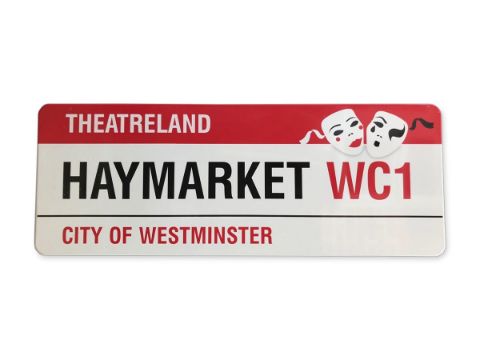 An enamelled iron street sign for Haymarket WC1 Theatreland, City of Westminster
