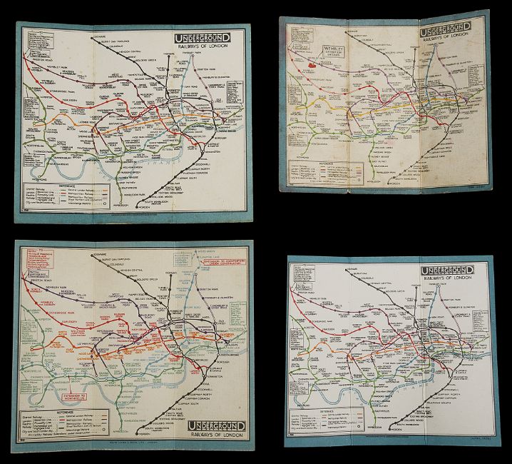Four 1925-30 Stingemore-designed London Underground folding pocket maps,