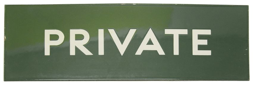 A BR(S) enamel door sign displaying 'PRIVATE',