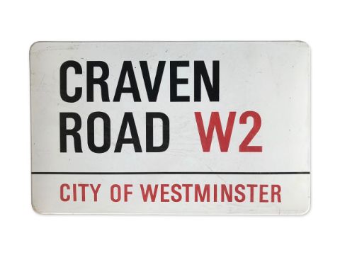 An enamelled iron street sign for Craven Road W2, City of Westminster