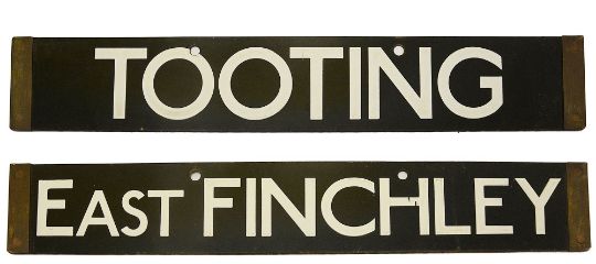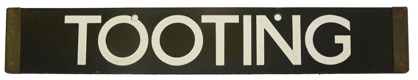 A London Underground Standard Tube Stock enamel cab destination plate for TOOTING / EAST FINCHLEY,