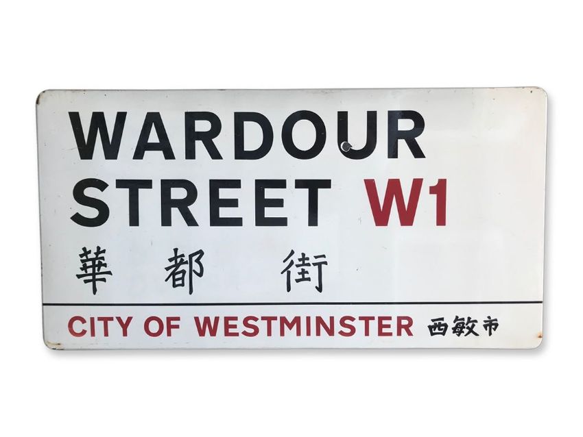 An enamelled iron street sign for Wardour Street W1, City of Westminster