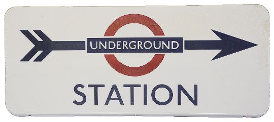 A London Underground enamel direction sign displaying 'UNDERGROUND / STATION',