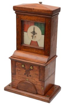 in large mahogany case, with single dial indicating 'Train on Line / Line Clear / Line Blocked', stamped five places M.R.Co,