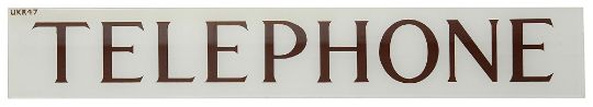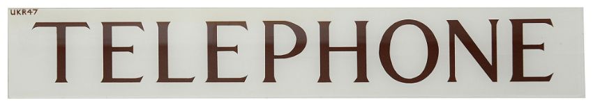 A glass sign displaying 'TELEPHONE' from a K6 Telephone Box,