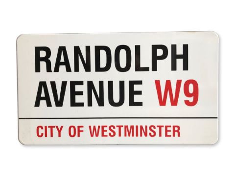 An enamelled iron street sign for Randolf Avenue W9