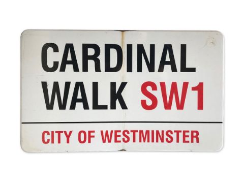 An enamelled iron street sign for Cardinal Walk SW1, City of Westminster