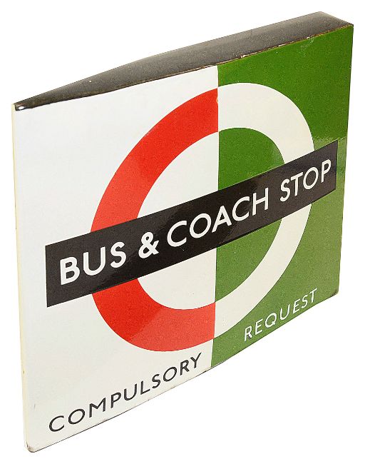 Condition: some losses to the enamel and restoration around the 'REQUEST' lettering lower right and 'BUS' on the roundel, other dents and chips