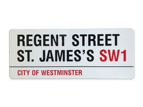 An enamelled iron street sign for Regent Street St. James's SW1, City of Westminster