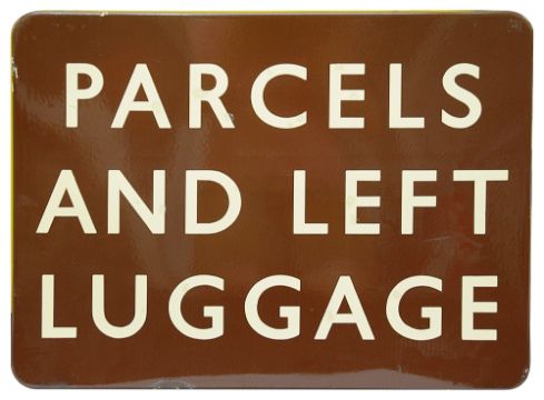 A BR(W) enamel sign displaying 'PARCELS / AND LEFT / LUGGAGE',