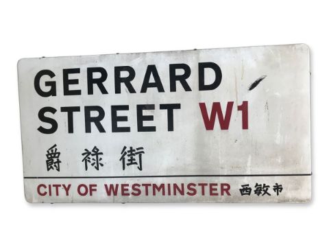 An enamelled iron street sign for Gerrard Street W1 Chinatown, City of Westminster