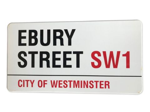 An enamelled iron street sign for Ebury Street SW1, City of Westminster