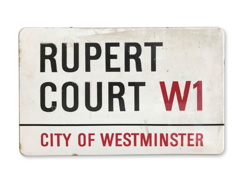 An enamelled iron street sign for Rupert Court W1